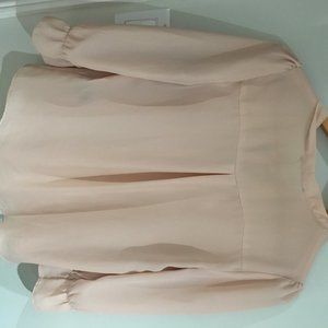 Light, comfortable pink blouse. Size XS - fits loose. 3/4 length sleeves. The ribbons at the front can either be tied or untied.