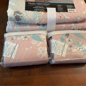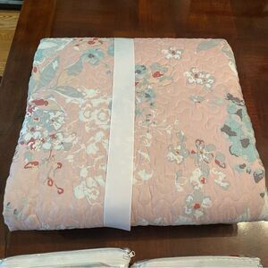Pink Blush Grey Floral Queen Size Bed Quilt and Shams NEW Bedding