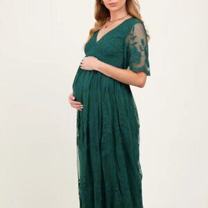 PinkBlush green lace mesh overlay maxi dress (size M)