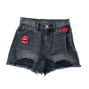 Pinko Black Limousine Gina Denim Shorts Sequin Lips ( 26 )