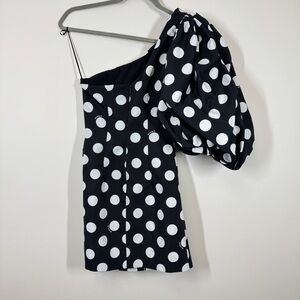 Pinko Classic Pin Up One Shoulder Black White Polka-dots Mini Dress Size 1