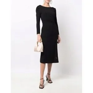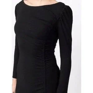 PINKO puts a textural spin on the classic LBD. This piece is cut with a boat neckline and features impactful ruching along the entire body.