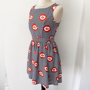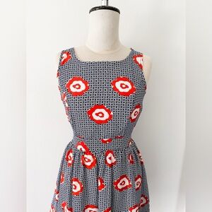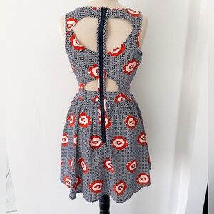 Pinky Retro Floral Cut Out Dress, Size Small, Navy, White, Red