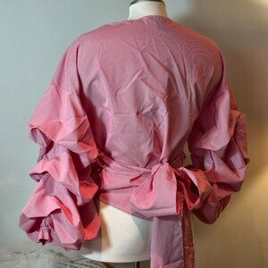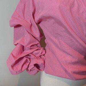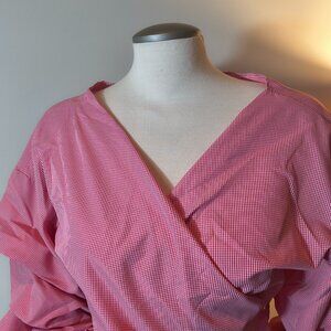 Red and White Stripe Poplin Blouse. Relaxed fit. Adjustable waist.
