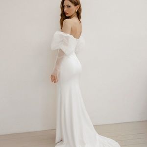 Crepe deep v-neck wedding dress, Minimalist fit and flare wedding dress, Sexy wedding dress