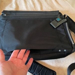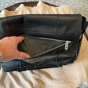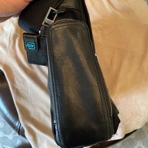 Fantastic brand with lots of details and style! This Piquadro Leather and Ballistic nylon bag is perfect fort those who like to carry lots of items but want hem organized and compartmentalized. Plenty of pockets, travel handle on. the back, magnetic closure, padded leather shoulder strap and much more! If you want quality, style and function you can't beat this brief! In. Mind condition, one small mark on zipper. Sells for over $479 usd right now!