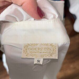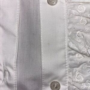 This is a great piece for costumes, cosplay, or even personal styling. This is from the Japanese brand Miho Matsuda and is their golden label. Its made of cotton and is nicely constructed. Their is some minor staining along the front ruffles and some yellowing of the collar