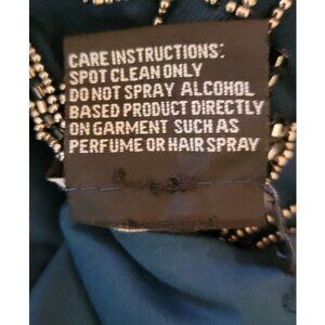 This stunning vintage-inspired Pisarro Nights gown is a perfect choice for a formal event, art deco party, or special occasion. The dress is a beautiful deep teal blue and features intricate, all-over beading and sequin embellishments in floral and lattice patterns.
