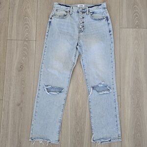 pistola Charlie high rise distressed exposed button fly straight jeans light wash Granada size 26