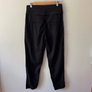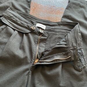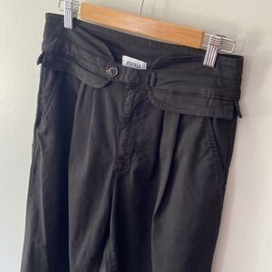 These high-waisted pants by Pistola have pleats and pockets on the hip. Nice waist detailing with double button closure in the front with a zipper. Tapered legs, ankle length. Lots of stretch.