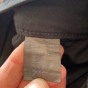 I believe these may have been a sample as there is no content/care tag, just a hand-written tag from the factory. Definitely contains elastane or spandex because there’s good stretch in the fabric. Nice drape.