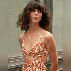 Pixie Market Custom Adobe Boho Floral Sundress Print Knot Midi Dress Size XS.