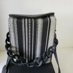 Pixie Mood womans black/white Billie crossbody bag with chain link handle only for decor not use,has long adjustable strap,top magnetic closure,interior slip pocket.
