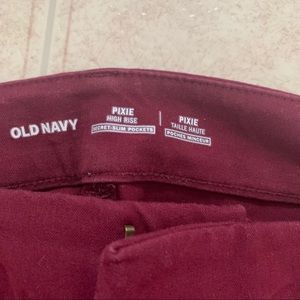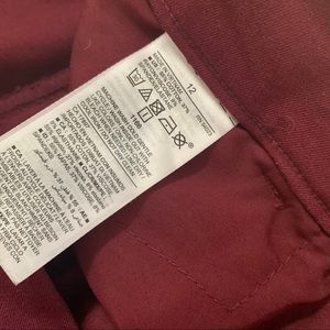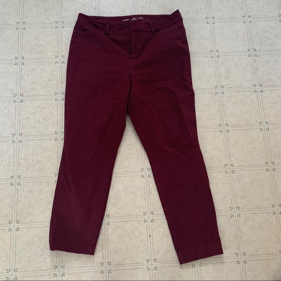 Secret slimming pockets! Burgundy in colour. Size 12 inseam 27”. Skinny leg, fitted through hip and thigh.