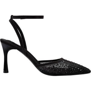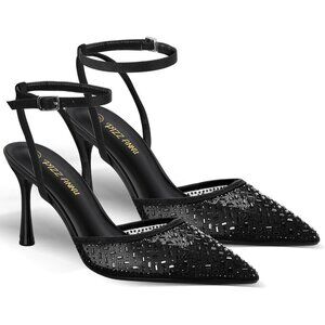 Pizz Annu Women's Black Closed Toe Mesh Sparkly Ankle Strap Cienna High Heels
