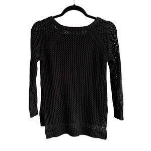 PJK Patterson J. Kincaid Black Cotton Scoop Neck Long Sleeve Knit Mesh Open Knit High Low Sweater