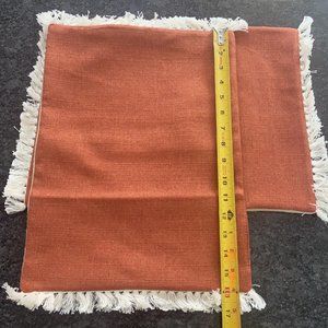 Placemats Double Sided Orange and Cream with Fringe Set 2