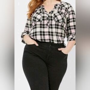 Torrid plaid button-up shirt. Features pink and black checkered pattern. Perfect for casual wear. No tags inside. Size 16 (Torrid size 2)