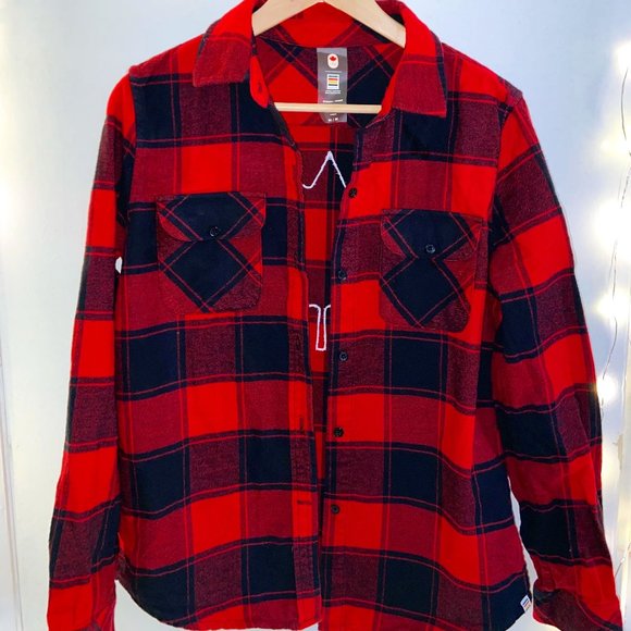 Thick and warm, double breast pocket with a maple leaf emblem on the back and left arm