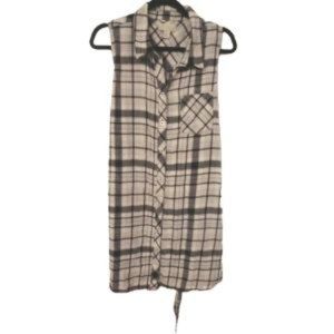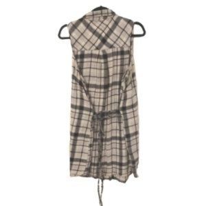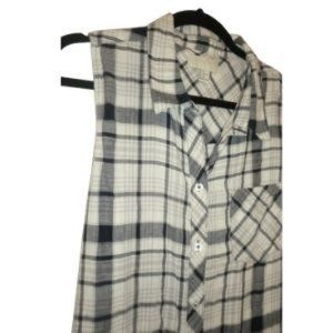 Forever 21 button down plaid dress. Bought it for vacation, only worn once. Pictures look black and white, but it's a Navy blue and off white. Comes with a thin belt and buttons all the way down.