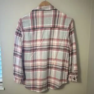 This pink and charcoal plaid flannel is the perfect blend of cozy and stylish. Made from 100% polyester, it offers a soft feel with lasting durability. In like-new condition, it’s an easy, versatile layer that adds a touch of warmth and colour to any casual outfit.