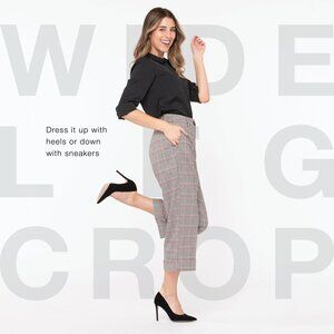 Plaid Crop Cuffed Wide Leg Dress Pant - Size 16
