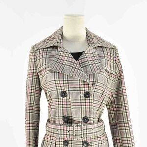 The perfect multi-season coat, this brushed cotton pink, brown, and cream Esprit trench would be a great addition to your wardrobe. Size M. Belt at waist. Double breasted. Front flap pockets. Button detail on shoulders and cuffs. Sleeves are lined with hot pink fabric. Shoulder pads can be easily removed. Dress it up or down.