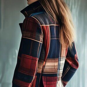 Plaid Fall/Winter Buttoned Light Retro/Vintage Style Jacket