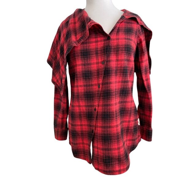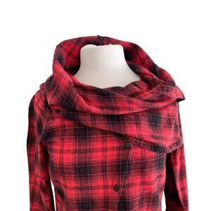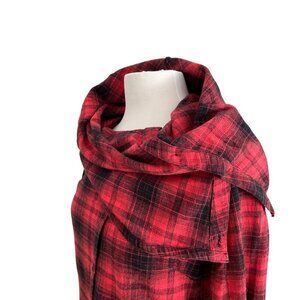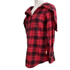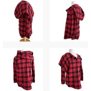 Plaid Hooded Button-Up flannel Shirt With Shawl Collar In Red & Black size Large