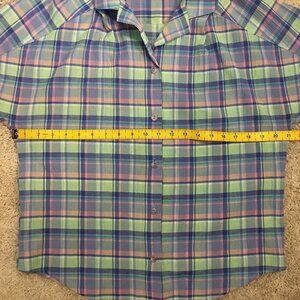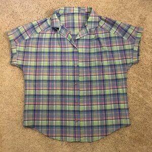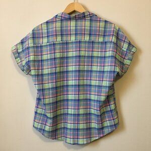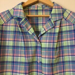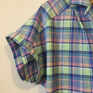 Plaid Pastelcore Seersucker Button Down Short Sleeve Top