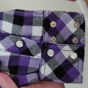 Purple, black & white plaid, flannel shacket. Lined, except sleeve. Hardly worn, excellent condition!