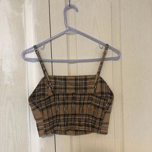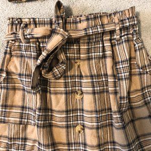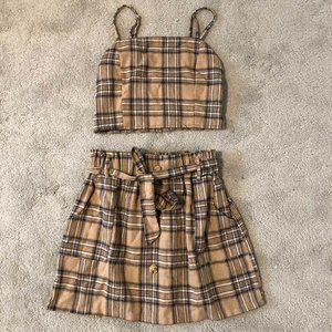 Plaid two piece set size Large. It has a crop tank top, and matching high waisted skirt. The top has an elasticised back so it's super stretchy, and it has adjustable straps. The skirt has pockets, decorative buttons on the front and a stretchy waist so it's a pull-on skirt. It also has belt loops and a matching belt. It's also made from 95% cotton so it's super breathable fabric. Great for the end of summer and fall, a super cute look for back to school. Excellent condition. *Check out my closet for lots of "free with purchase" items.