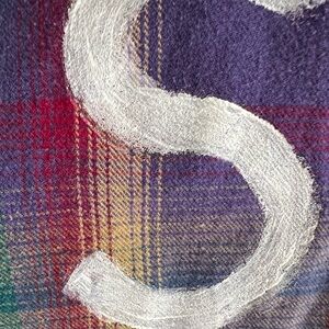I painted the words on the back of the shirt. It’s done in white paint. There is some sparkle.