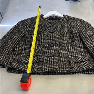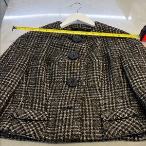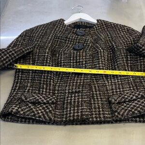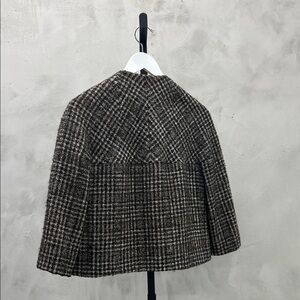 Elevate your style with this chic plaid wool jacket. Perfect for any occasion, this jacket combines comfort and elegance. The classic black and brown pattern adds a timeless touch to your wardrobe like new