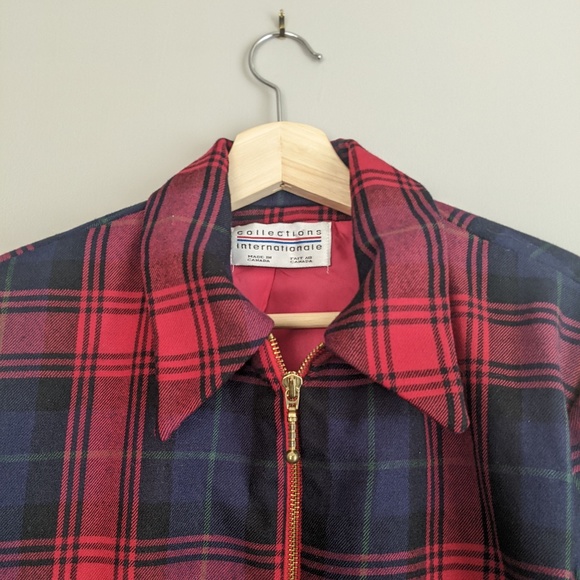 Plaid wool and cashmere blend jacket/blazer with gold zipper medium