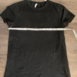 Plain black t-shirt, size XS, short sleeves.