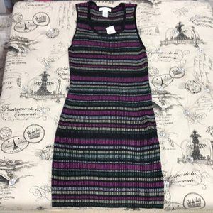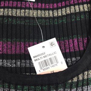 Metallic stripes bring sparkle and glam to this plus size bodycon dress from Derek Heart, designed without closures for effortless wear.
