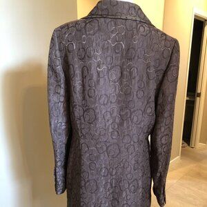 Features: classic coat with unique textured pattern, shimmer detail on raised circles, ribbon finishing detail on the large collar, front double breasted button closure + 2 slit pockets, 5 button cuffs, day to evening this is a statement coat, wedding, party