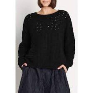 Planet by Lauren G Pima Cotton Lattice Crewneck Sweater Midnight One Size