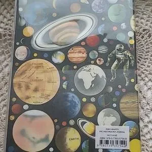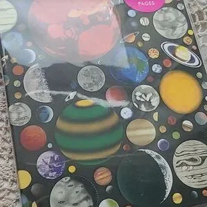 Notebook featuring a vibrant planetary design. Includes 6 storage pockets and 160 mixed pages.