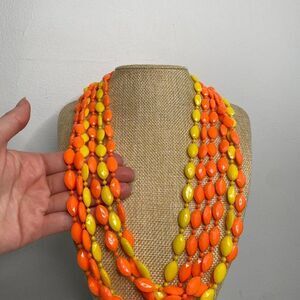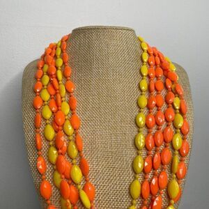 Plastic Beaded Multi Strand Orange & Yellow Necklace