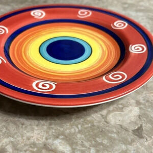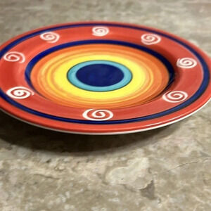 Beautiful plate. If you need a replacement plate .8” salad plate . Red, blue ,yellow ,orange ,green .
