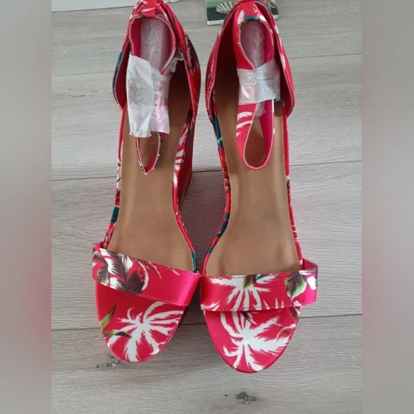 new,shiny hot pink fabric with Palm 🌴 platform in the back 4,5" in the front 1.5"