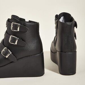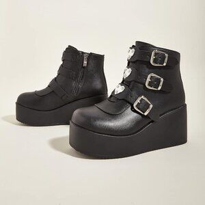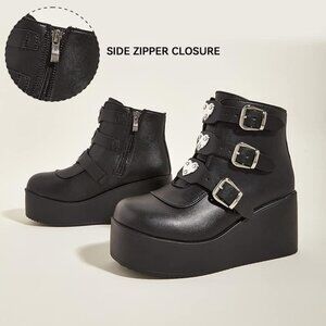 🆕 Platform Chunky Ankle Boots - Women Black Polyurethane Rave Goth Booties