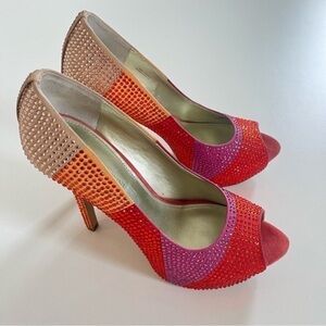 Platform Heels Enzo Angiolini 10 Barbie Peep Toe Stiletto Red Pink Orange