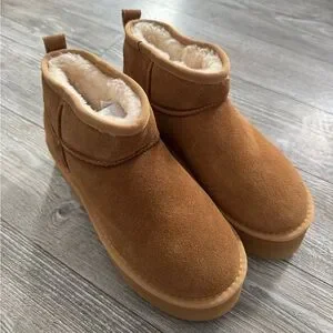 DREAM PAIRS Platform Mini Boots for Women Genuine Suede, Winter Ankle Snow Boots with Memory Foam Insole Lightweight Anti-Slip Outsole for Outdoor Indoor FuzzyClassic