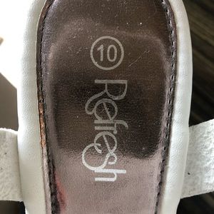 White, 5 inch platform sandals with floral cut out design. Purchased at a boutique in New York. Like new, only worn once or twice. There is a small scratch on one heel that is barely noticeable. ( see picture).