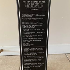 Extends to a maximum height of 60" and features a 3-way pan head and quick-release plate. The centre column can be used as a monopod extending up to 60".