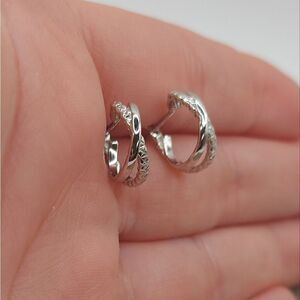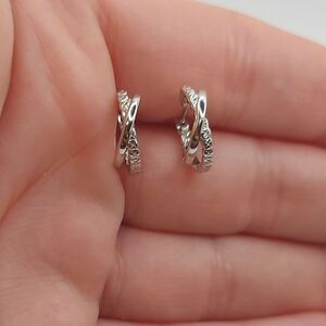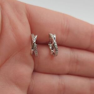 Platinum Plated Criss Cross 925 Sterling Silver Huggies Earrings