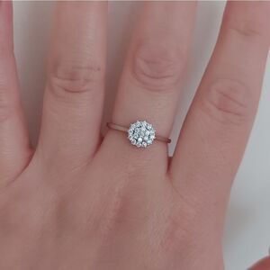 Platinum Plated S925 Sterling Silver Sparkling Flower Ring